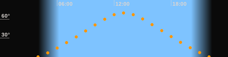 Höchster Stand (Kulmination)13:01 Uhr (h = 69,9°)