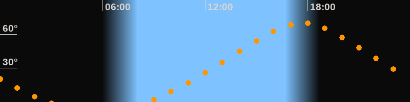 Höchster Stand (Kulmination)17:40 Uhr (h = 69,9°)