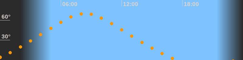 Höchster Stand (Kulmination)08:23 Uhr (h = 69,9°)
