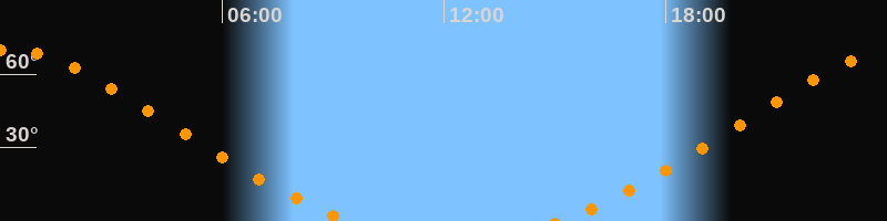 Höchster Stand (Kulmination)00:15 Uhr (h = 69,9°)