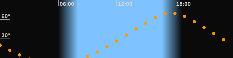 Höchster Stand (Kulmination)17:37 Uhr (h = 69,9°)