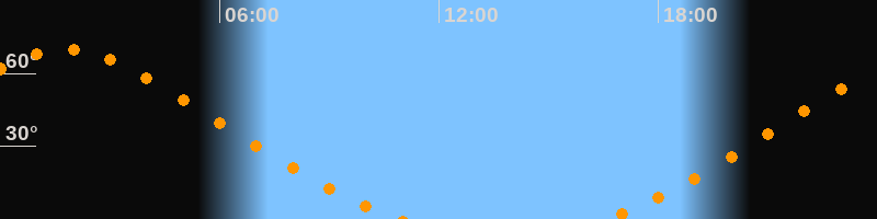 Höchster Stand (Kulmination)01:43 Uhr (h = 69,9°)