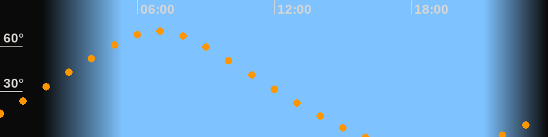 Höchster Stand (Kulmination)06:54 Uhr (h = 69,9°)