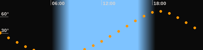 Höchster Stand (Kulmination)18:50 Uhr (h = 69,9°)