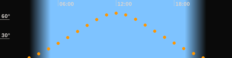 Höchster Stand (Kulmination)12:01 Uhr (h = 69,9°)