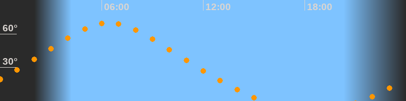 Höchster Stand (Kulmination)06:26 Uhr (h = 69,9°)