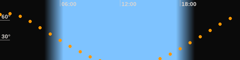 Höchster Stand (Kulmination)00:40 Uhr (h = 69,9°)