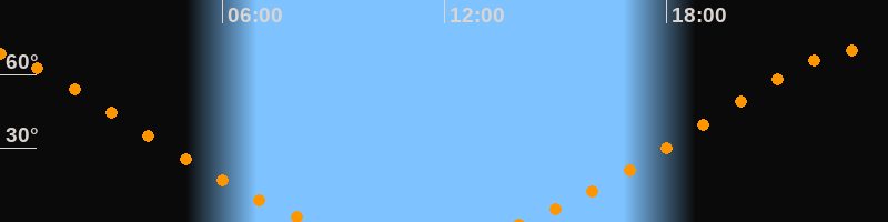 Höchster Stand (Kulmination)23:14 Uhr (h = 69,9°)