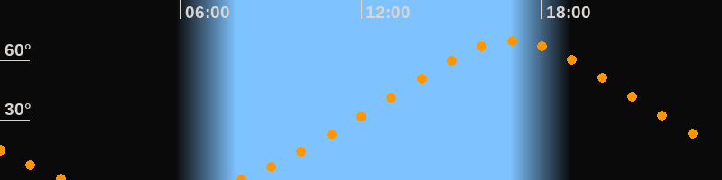 Höchster Stand (Kulmination)17:00 Uhr (h = 69,9°)