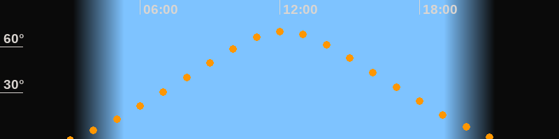 Höchster Stand (Kulmination)12:09 Uhr (h = 69,9°)