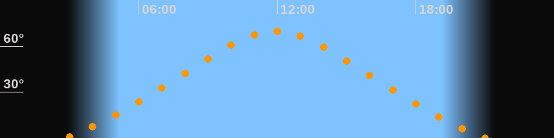 Höchster Stand (Kulmination)11:55 Uhr (h = 69,9°)
