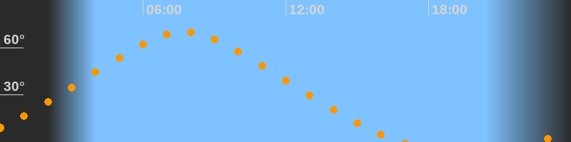 Höchster Stand (Kulmination)07:43 Uhr (h = 69,9°)