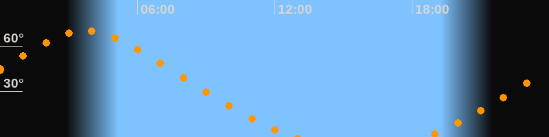 Höchster Stand (Kulmination)03:43 Uhr (h = 69,9°)