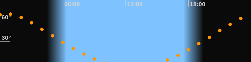 Höchster Stand (Kulmination)00:34 Uhr (h = 69,9°)