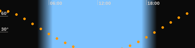 Höchster Stand (Kulmination)00:20 Uhr (h = 69,9°)