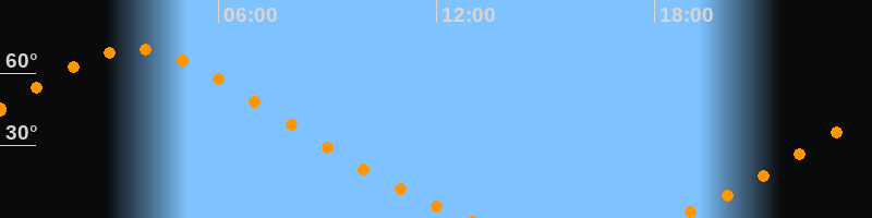 Höchster Stand (Kulmination)03:41 Uhr (h = 69,9°)