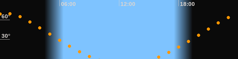 Höchster Stand (Kulmination)00:32 Uhr (h = 69,9°)