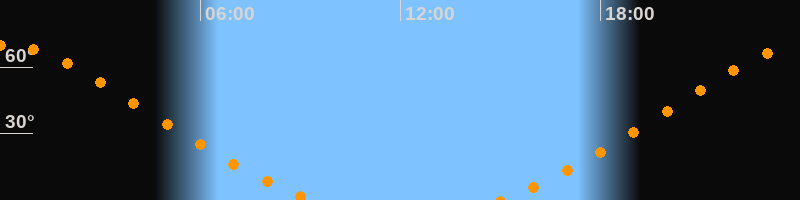 Höchster Stand (Kulmination)00:09 Uhr (h = 69,9°)
