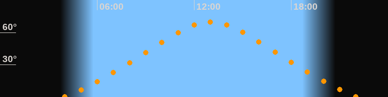 Höchster Stand (Kulmination)13:00 Uhr (h = 69,9°)