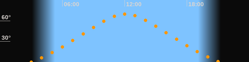Höchster Stand (Kulmination)12:05 Uhr (h = 69,9°)