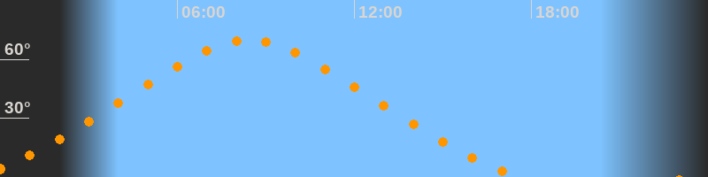 Höchster Stand (Kulmination)08:25 Uhr (h = 69,9°)