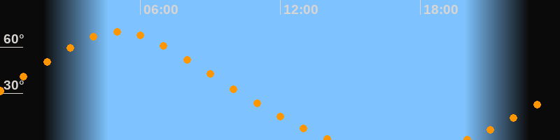 Höchster Stand (Kulmination)05:05 Uhr (h = 69,9°)