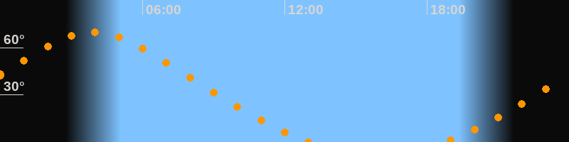 Höchster Stand (Kulmination)03:55 Uhr (h = 69,9°)