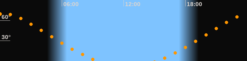 Höchster Stand (Kulmination)00:19 Uhr (h = 69,9°)