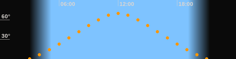 Höchster Stand (Kulmination)11:59 Uhr (h = 69,9°)