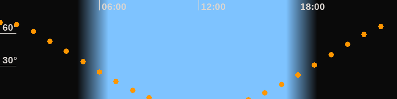 Höchster Stand (Kulmination)00:07 Uhr (h = 69,9°)