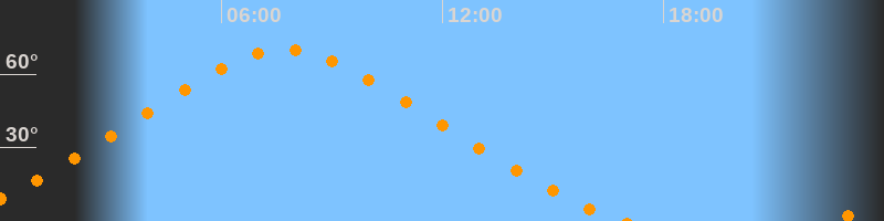 Höchster Stand (Kulmination)07:44 Uhr (h = 69,9°)
