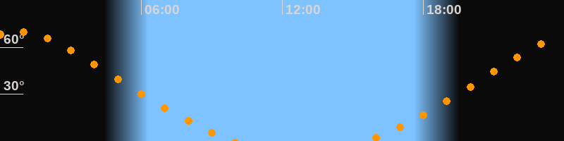 Höchster Stand (Kulmination)00:43 Uhr (h = 69,9°)