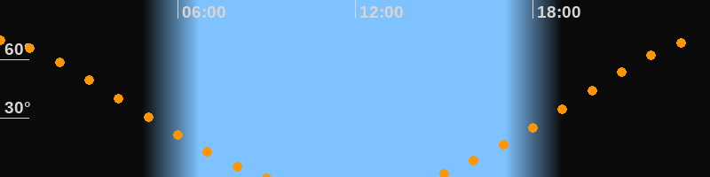 Höchster Stand (Kulmination)23:44 Uhr (h = 69,9°)