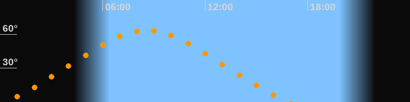 Höchster Stand (Kulmination)08:34 Uhr (h = 63,6°)