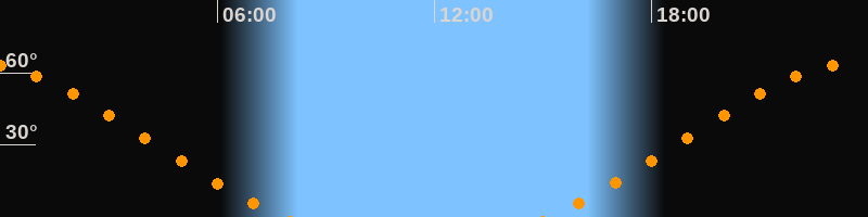 Höchster Stand (Kulmination)23:27 Uhr (h = 63,6°)