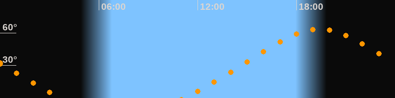 Höchster Stand (Kulmination)19:24 Uhr (h = 63,6°)