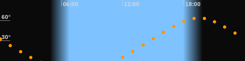 Höchster Stand (Kulmination)19:26 Uhr (h = 63,6°)