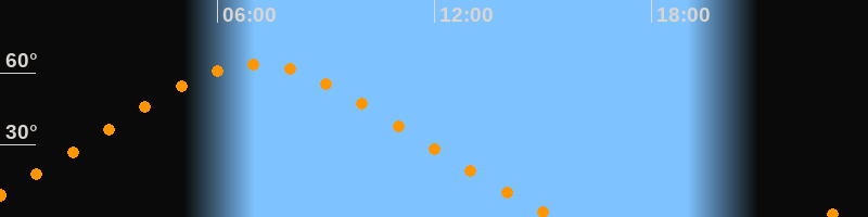 Höchster Stand (Kulmination)07:04 Uhr (h = 63,6°)