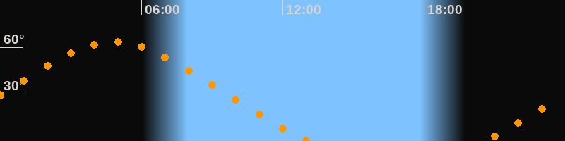 Höchster Stand (Kulmination)04:50 Uhr (h = 63,6°)