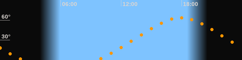 Höchster Stand (Kulmination)17:55 Uhr (h = 63,6°)