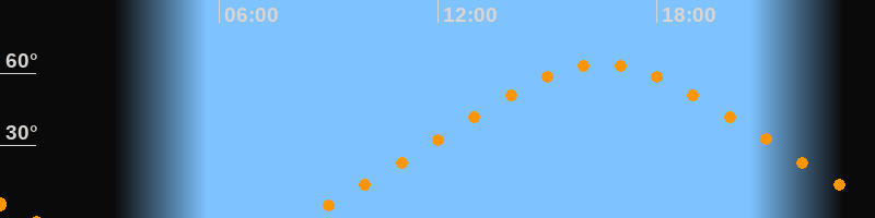 Höchster Stand (Kulmination)16:30 Uhr (h = 63,6°)