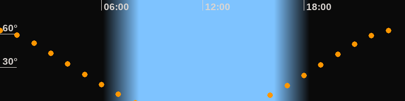Höchster Stand (Kulmination)23:31 Uhr (h = 63,6°)
