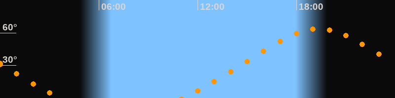 Höchster Stand (Kulmination)19:21 Uhr (h = 63,6°)