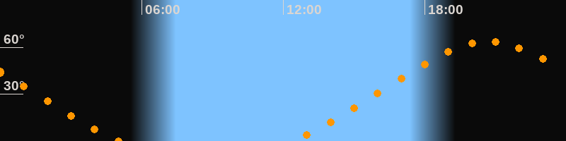Höchster Stand (Kulmination)20:41 Uhr (h = 63,6°)