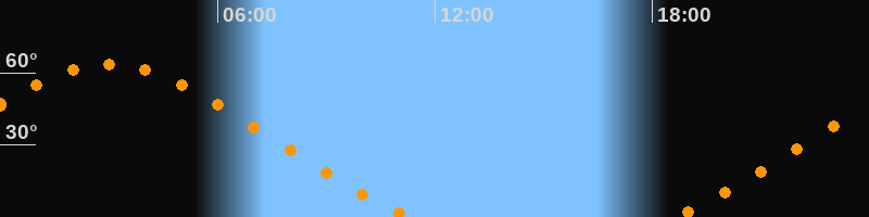 Höchster Stand (Kulmination)03:00 Uhr (h = 63,6°)