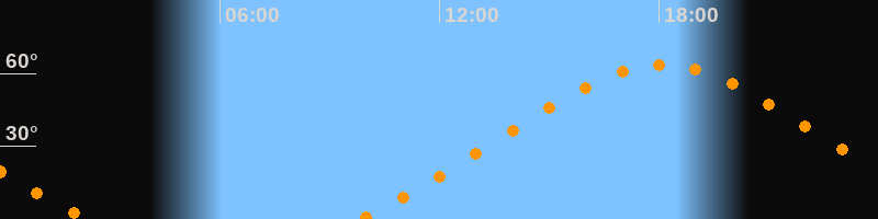 Höchster Stand (Kulmination)18:05 Uhr (h = 63,6°)