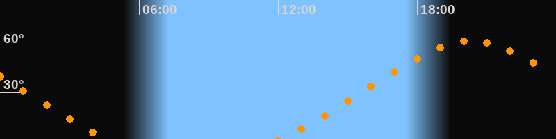 Höchster Stand (Kulmination)20:20 Uhr (h = 63,6°)