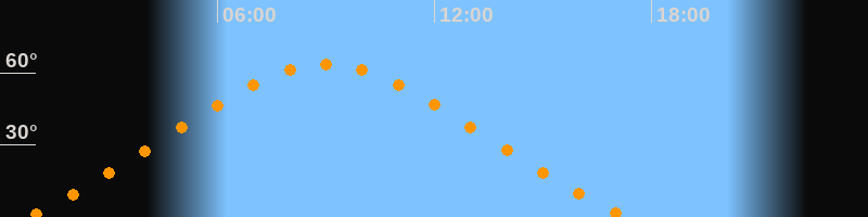 Höchster Stand (Kulmination)09:01 Uhr (h = 63,6°)
