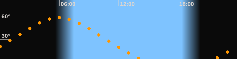 Höchster Stand (Kulmination)05:57 Uhr (h = 63,6°)