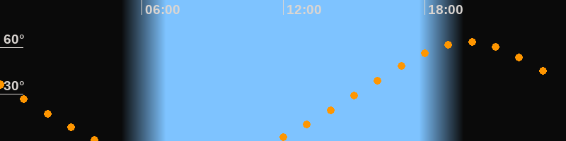 Höchster Stand (Kulmination)19:50 Uhr (h = 63,6°)